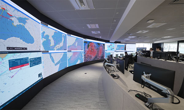 安全運航支援センター(SOSC)が刷新。大型ビデオウォールシステムを活用して、安全運航支援に必要な情報を多数同時に大画面で表示する。