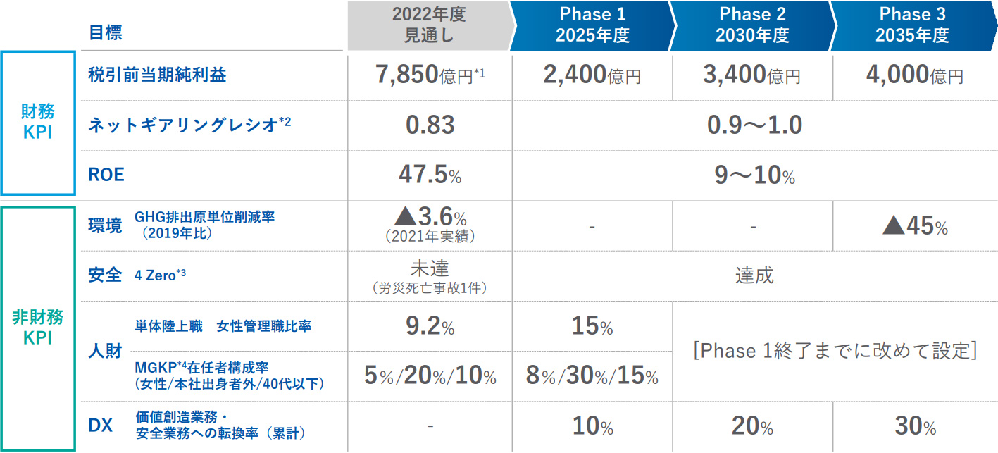 「BLUE ACTION 2035」では、従来のローリング方式を改め、Rolling Plan 2022での構想や取り組みをさらに発展させ、2035年をゴールとするグループビジョン実現に向けた大きな方向性を示しています。