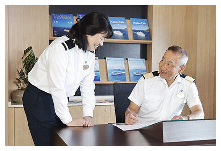 日本のクルーズ文化を、もっと世界に発信していきたいですね。日本には、四季の自然や伝統文化に根ざした美しさがあります。そして心を込めたおもてなしがあります。そんな喜びに満ちた「日本の美しい船旅」を届けたい。私の夢は、世界の人々が「MITSUI OCEAN CRUISES(三井オーシャンクルーズ)で日本のおもてなしを味わいたい」と思っていただけるような、唯一無二の会社にしていくことです。クルーズは人と人、国と国をつなぐ舞台。だからこそ、世界で働くMOLの仲間たちとの絆を大切にしながら、旅の感動をつくり続けていきたいと思います。