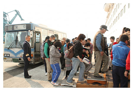東日本大震災の直後、私が乗船していた「ふじ丸」が岩手県に派遣されたことがありました。大船渡・釜石・宮古に寄港し、被災された方々に食事や入浴、休息等のデイユースサービスを提供しました。それぞれの寄港地で私たちがこれまで歓迎を受けてきたことへのせめてもの恩返しという思いで、スタッフ一丸となって精一杯のおもてなしをさせていただきました。たくさんの方から感謝の言葉をいただき、それは「クルーズ船で働く自分に何ができるか」ということを深く考えさせられた経験でした。この支援活動も、グループ全体の想いがあって実現できたこと。私はあの日、MOLの一員であることを心から誇りに思いました。