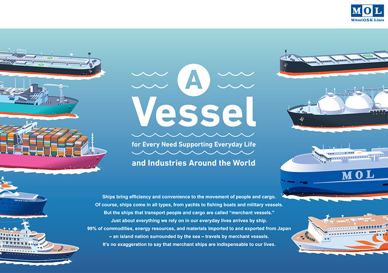 Mitsui O.S.K. Lines, as a social infrastructure company centered on the sea, sustaining people's lives and ensuring a prosperous future from the blue oceans.