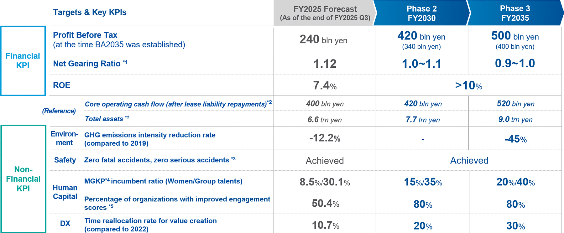 Based on the results of Phase 1 and the business plan for Phase 2, MOL has revised its core KPIs upward from the initial plan.