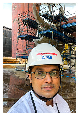 Pradeep Karkada Ganesh was born in Mangaluru, India. He began his career with MOL as a Junior Engineer in 2005. After gaining over 15 years of sailing experience aboard various MOL vessels, he transitioned to a shore-based role and now serves as a Deputy Manager at MOL Ship Management Co., Ltd., overseeing ship operations from the Singapore office.