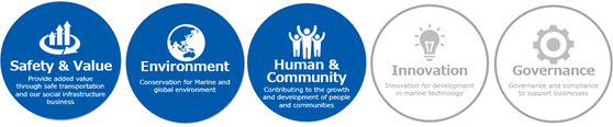 We anticipate this initiative to contribute especially to the realization of "Safety & Value -Provide added value through safe transportation and our social infrastructure business-", "Environment -Conservation for Marine and global environment-" and "Human & Community -Contributing to the growth and development of people and communities-".