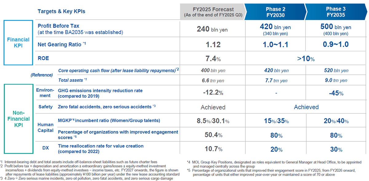 Based on the results of Phase 1 and the business plan for Phase 2, MOL has revised its core KPIs upward from the initial plan.