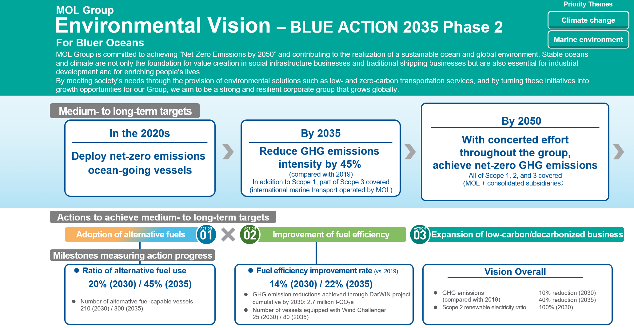 In April 2026, in conjunction with the formulation of Phase 2 of our corporate management plan, BLUE ACTION 2035, we updated the MOL Group Environmental Vision, which sets out the Group's fundamental approach to Environment. The Vision was originally established in 2020, and this update was approved by the Board of Directors in February 2026.