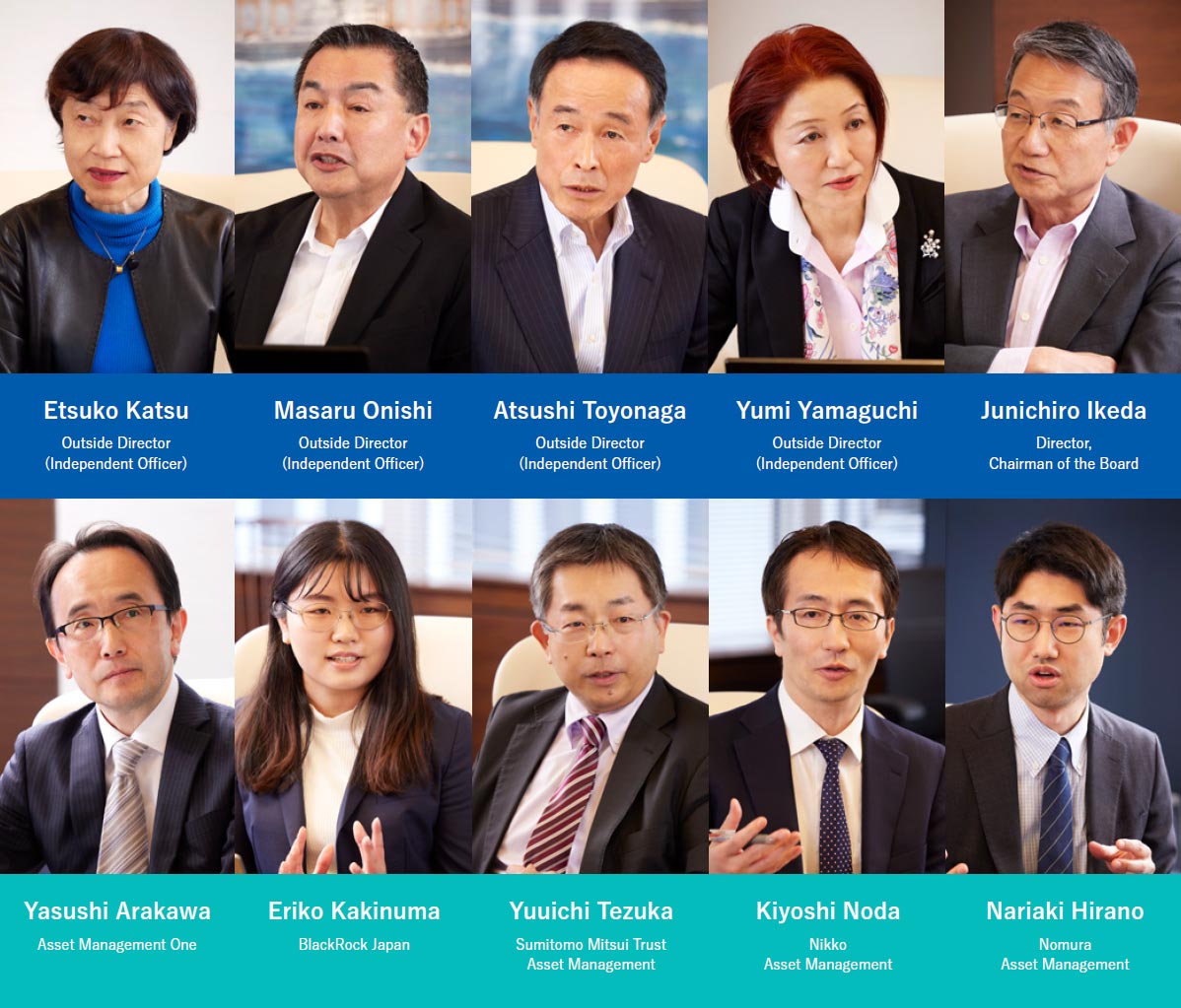Tezuka As institutional investors, we also have a longterm outlook and realize that in pursuit of this goal, it is only natural for the pace of efforts to change depending on the circumstances at any given time. I understand that the goal remains the same from a long-term perspective, but the course taken to reach the final destination may change. MOL has acted as a mover in the shipping industry since the integration of the container shipping businesses of three Japanese shipping companies, and I look forward to seeing MOL display leadership in the environmental field as well. I believe that these efforts will ultimately lead to an increase in MOL's corporate value.