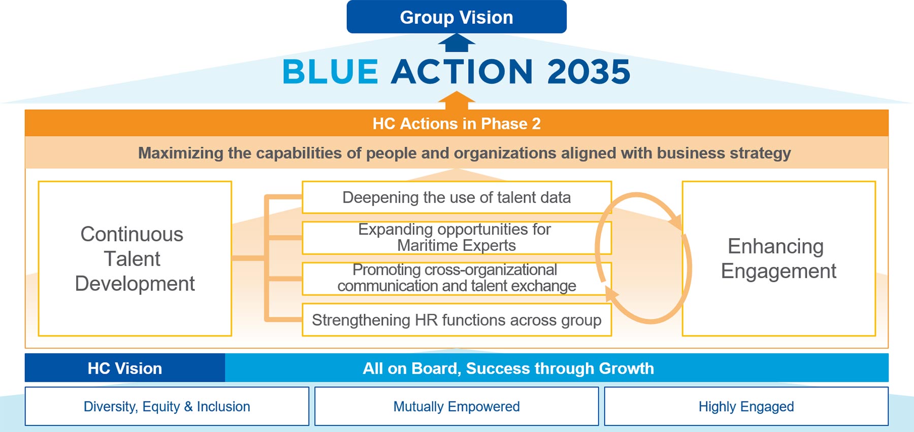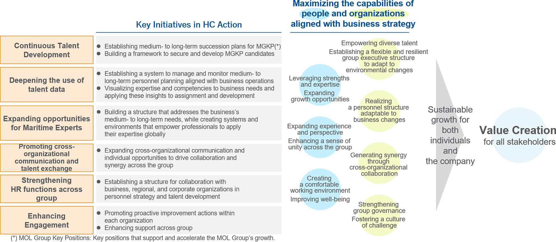 By developing such an environment and systems, the MOL Group aims to maximize the "capabilities of our people and organizations" in alignment with the group's business strategy, and evolve into a strong and resilient corporate group that grows on a global scale.