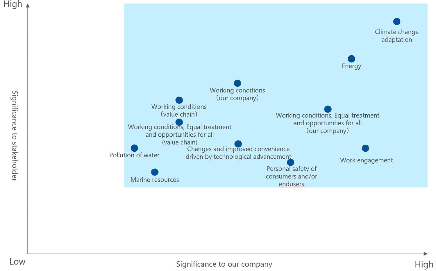 The content of these sustainability issues was approved by the Board of Directors in March 2026. The Board also oversees the status of related initiatives, and we will continue to annually assess the need to review our materiality and make revisions as necessary in response to changes in the business environment.