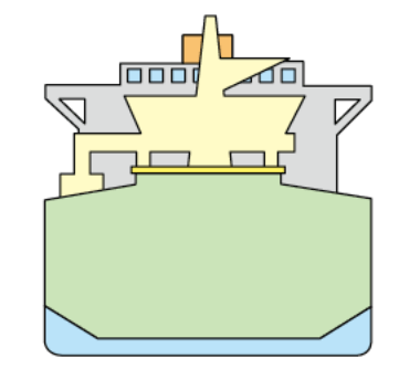 Bulkships have “topside tanks,” triangular ballast tanks (filled with water to stabilize the vessel) fitted at both shoulders/wings of the cargo holds. These help the ship maintain the proper trim no matter how much cargo is on board. The sides on the lower part of the hold are designed with a hopper configuration to maximize loading/discharging efficiency by preventing cargo from accumulating in the corners.