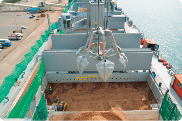 ![]() Woodchip carrier discharging cargo Woodchip carrier discharging cargo