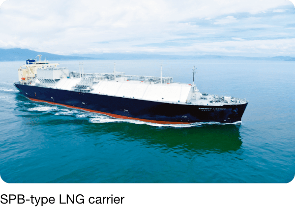 ![]() Self-supporting Prismatic shape IMO type B (SPB) LNG carrier Self-supporting Prismatic shape IMO type B (SPB) LNG carrierThis self-supporting prismatic shape tank uses aluminum alloy or stainless steel, with heat insulation on the exterior. This type of tank has the advantage of allowing for broader use on deck because it is more easily fitted on the hull in comparison with spherical cargo tanks and has no protruding structures on deck. ![]()