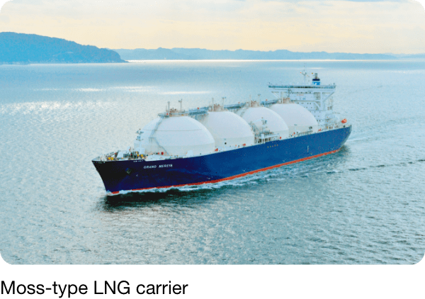 ![]() Moss-type LNG carrier Moss-type LNG carrierThe spherical cargo tank is independent from the hull, and this unique configuration enables each tank to accommodate its internal pressure.