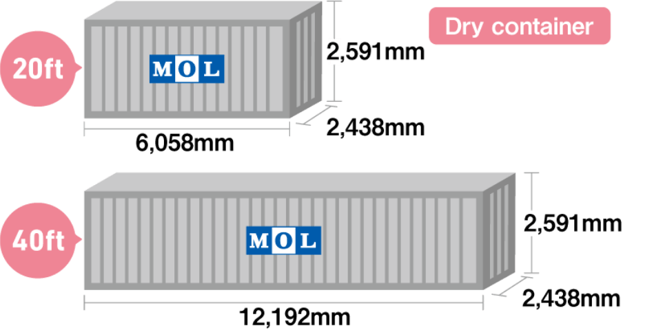 - There are basically two lengths for containers: 20 feet and 40 feet.