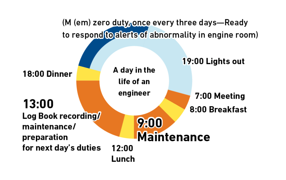 Operation and management of main and auxiliary engines/repair and maintenance of all onboard machinery/power generation and desalination for ship operation and daily life/bunkering planning and bunkering