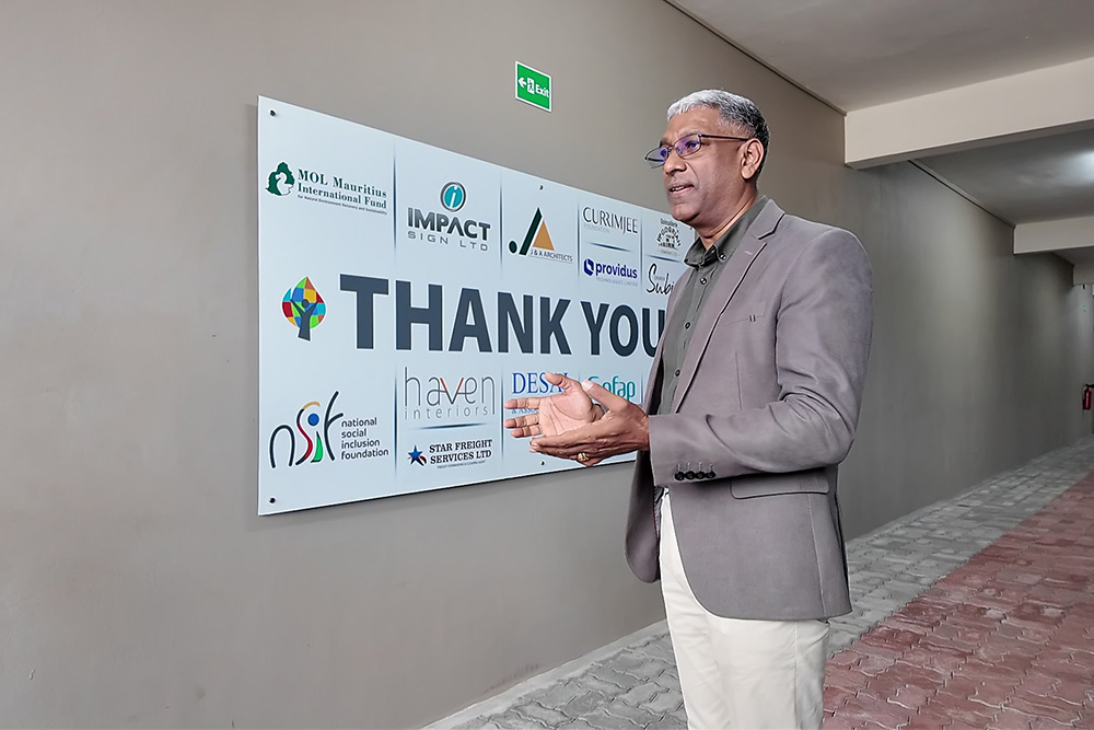 2024年9月6日、公益信託 商船三井モーリシャス自然環境回復保全・国際協力基金(以下、基金)(註1)が助成する地元NGO団体、APPEL(註2)が運営するソーシャルトレーニングセンターがポートルイス市内に新たに開設され、当社取締役会長の池田が出席しました。
