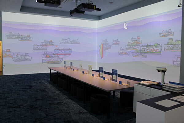 本ミュージアムは、世界初となる310度LEDスクリーンで囲まれた一般向け本格操船シミュレータ(註)や、様々な巨大な船などを映す横幅30メートルの大迫力シアター 、来館者の方が描いた船の絵が壁面を動くインタラクティブアートなどを備え、小中学生をはじめお子様を中心に、私たちの生活を支える船を「見て」「触れて」「遊び」体験できる施設です。