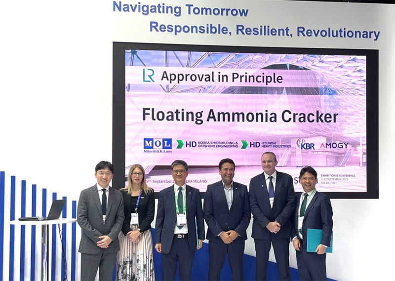 また、AiP授与式は、9月9日にイタリア、ミラノで開催された世界最大級のエネルギー国際展示会・会議「Gastech Exhibition & Conference 2025」(ガステック2025)にて執り行われました。近年クリーンエネルギーである水素の需要は高まっており、水素の普及のためにサプライチェーンの構築が求められています。アンモニアを船上で分解し、生産された水素を陸上に供給するというソリューションは、陸上基地の建設が困難な地域におけるクリーンエネルギーの安定供給を可能にし、脱炭素化に向けた水素サプライチェーンの構築に寄与します。
