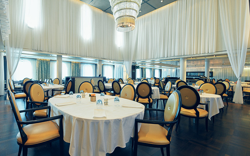 海の上で過ごすゆったりとした時間、そして、旬の食材や寄港地の特産品を取り入れた極上のお料理。そんなくつろぎの時間を創り出しているのは、貨客船時代から140年以上にわたってクルーズを運航してきた「三井オーシャンクルーズ」が受け継ぐ歴史と伝統です。