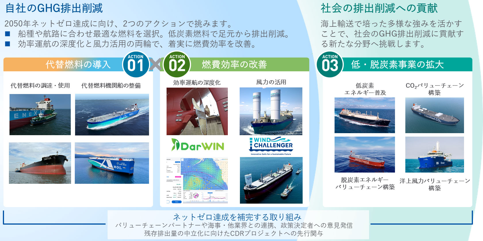 「2050年ネットゼロ・エミッション」を達成し、持続可能な海洋・地球環境の実現に貢献します。