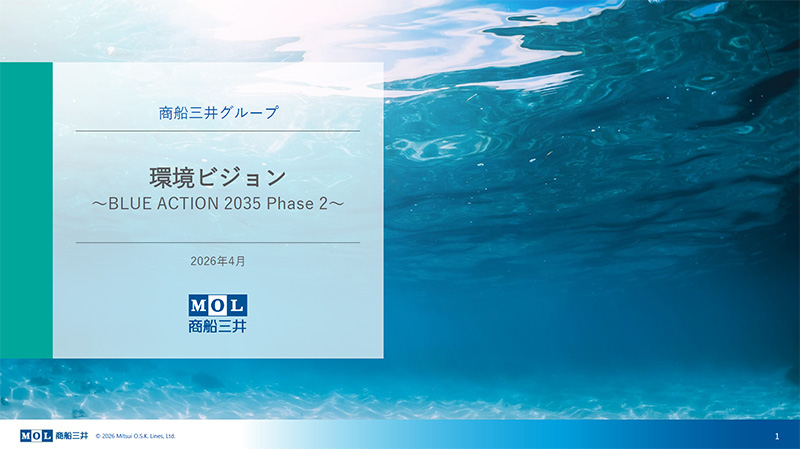 2026年4月、経営計画「BLUE ACTION 2035」Phase 2の策定に合わせ、当社グループの環境に関する基本的な考え方を示す「商船三井グループ 環境ビジョン」を更新しました。本ビジョンは2020年に初めて策定されたものであり、本件は2026年2月の取締役会にて承認されています。