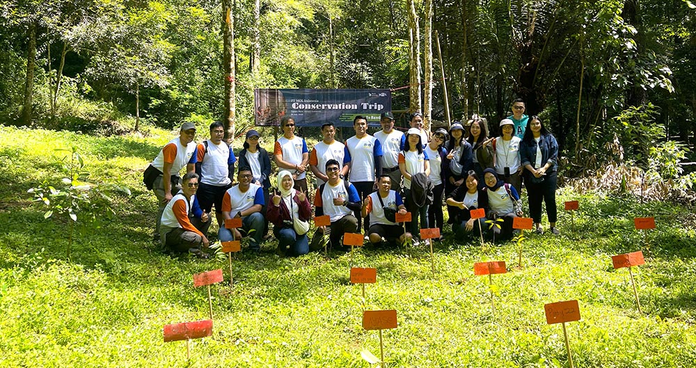 本イベントはインドネシア西ジャワ州バンドン近郊にある自然保護区「タマン・ブル・マシギット・カレウムビ」で開催され、22名が参加しました。PT MOL インドネシアは環境保全を目的に、地元在来種の3種の苗木(註1)を、合計100本植樹することを目指しています。
