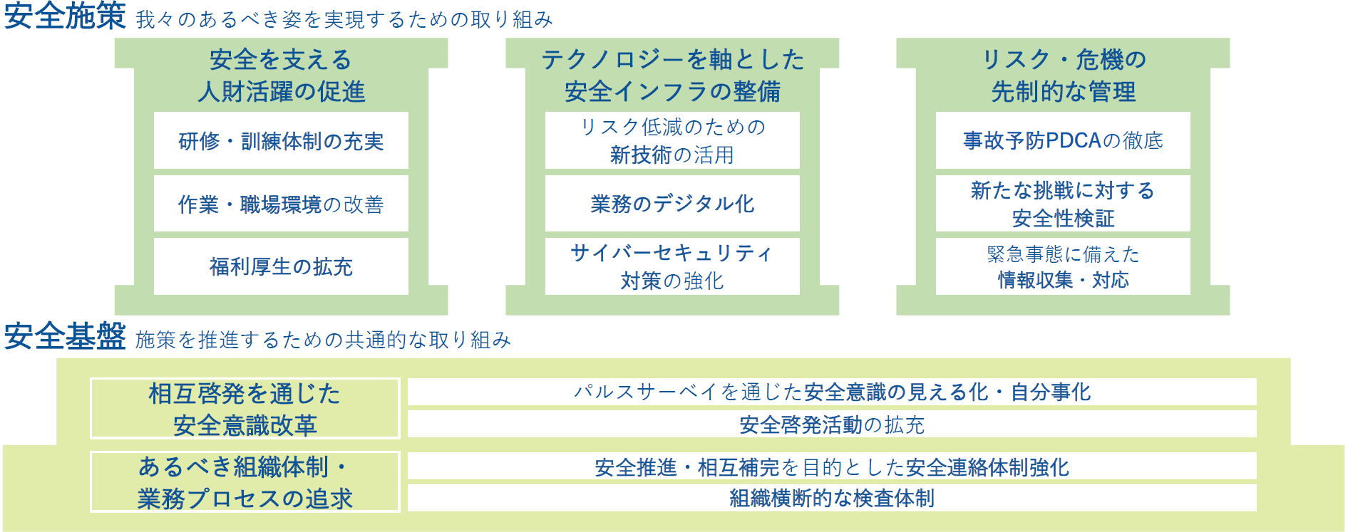 また、社会インフラ事業を営む当社グループにとって、安全を維持してサービスを提供することは事業の根幹であり、競争力の源泉です。