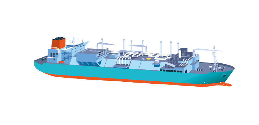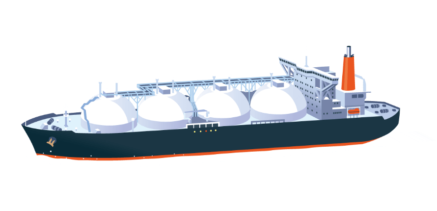 LNG(液化天然ガス=Liquefied Natural Gas)を運ぶタンカーがLNG船です。