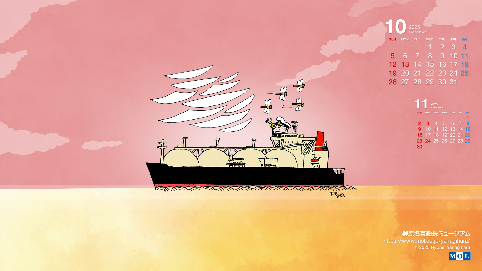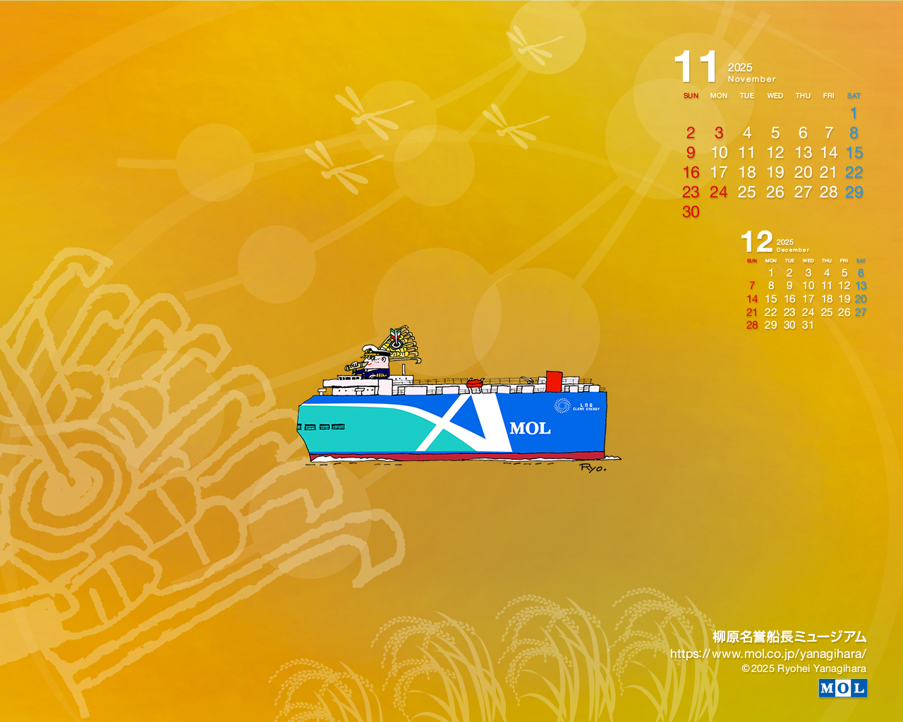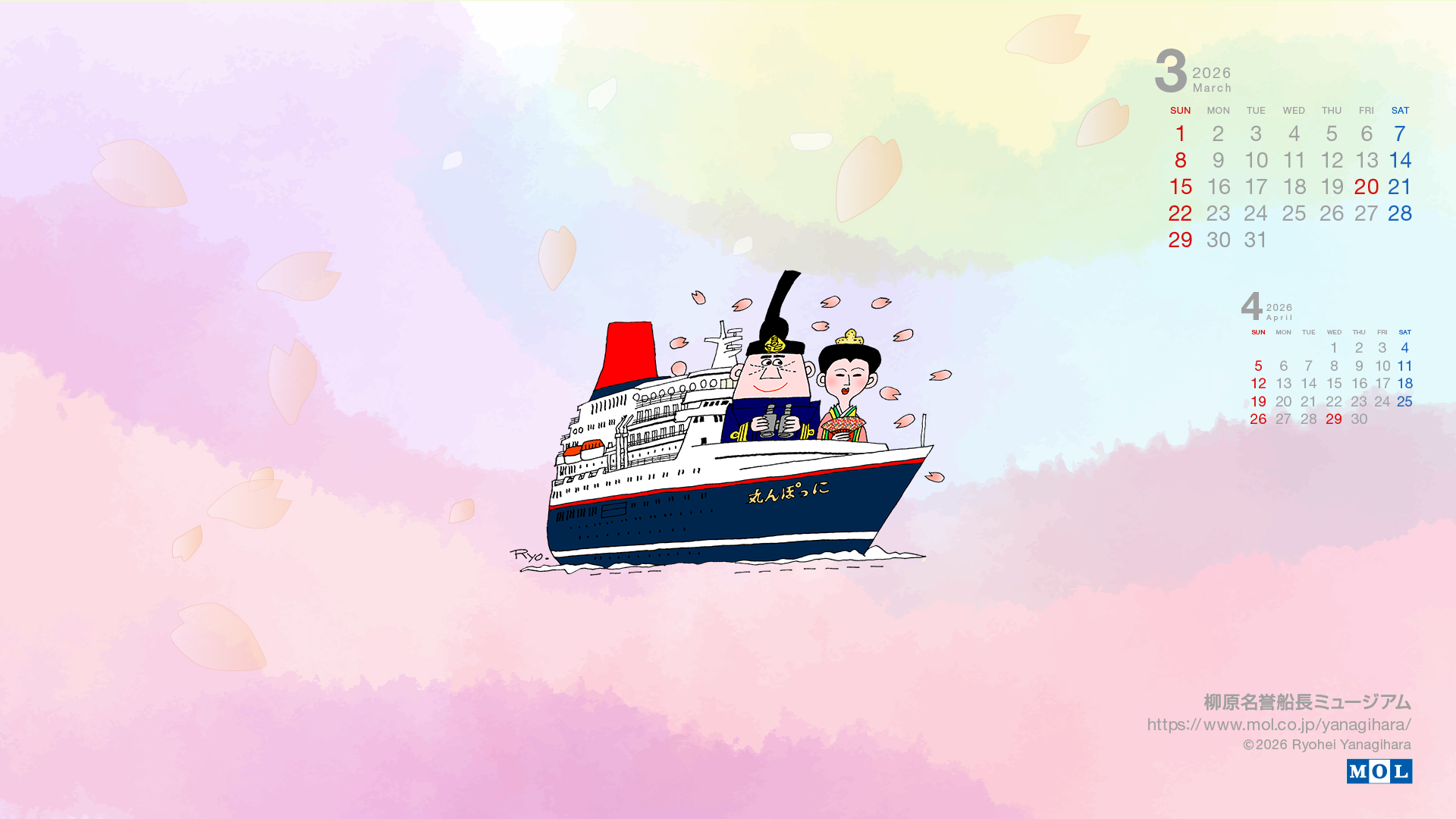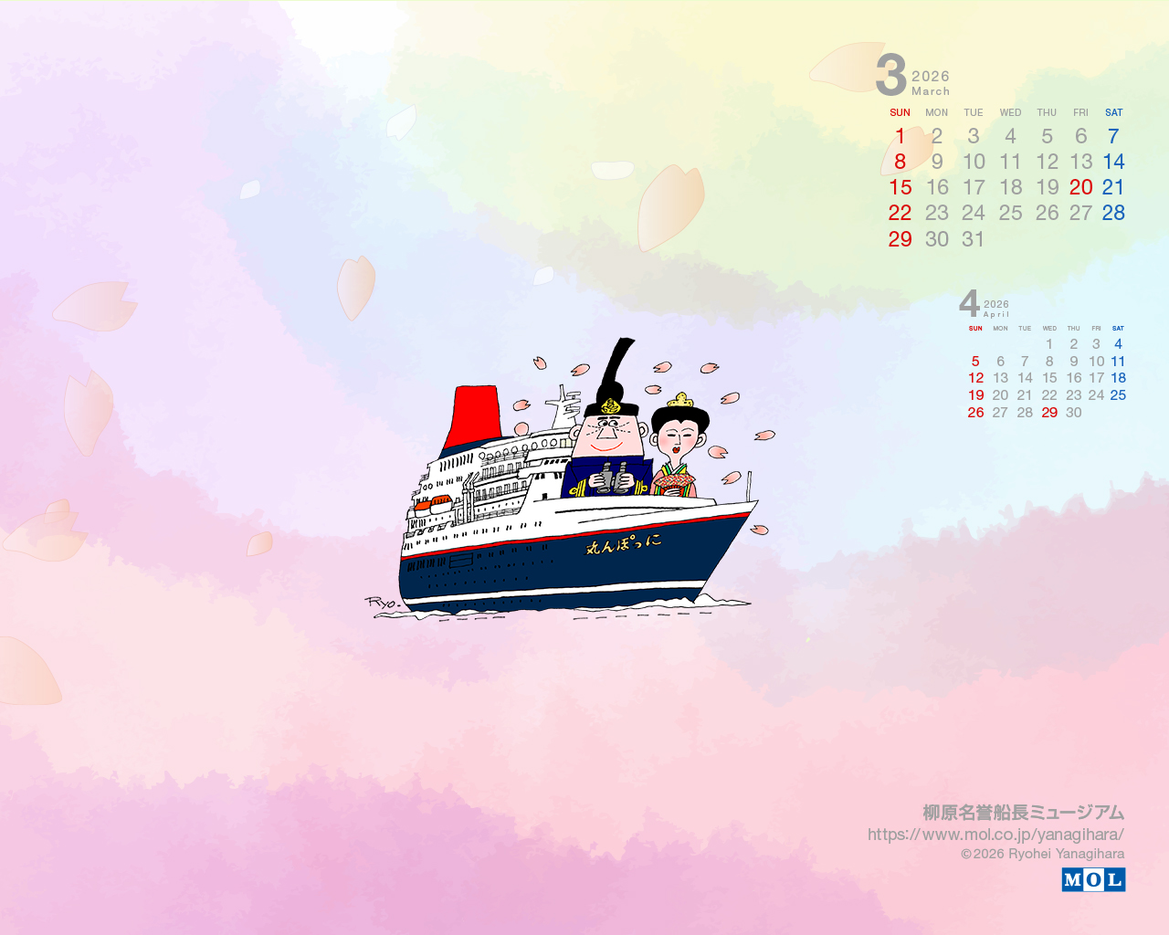 2015年8月、柳原名誉船長は逝去されましたが、これまでのたくさんの作品のなかから、これからもカレンダーを入れ替えてお届けします